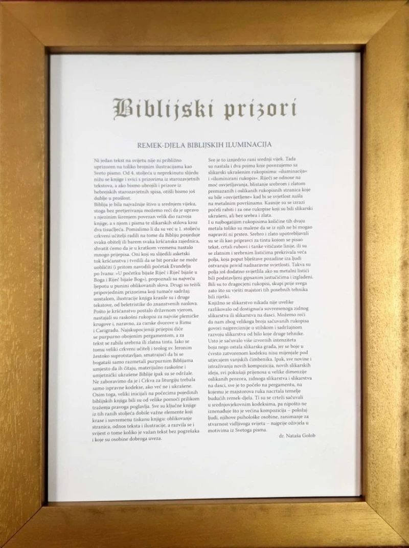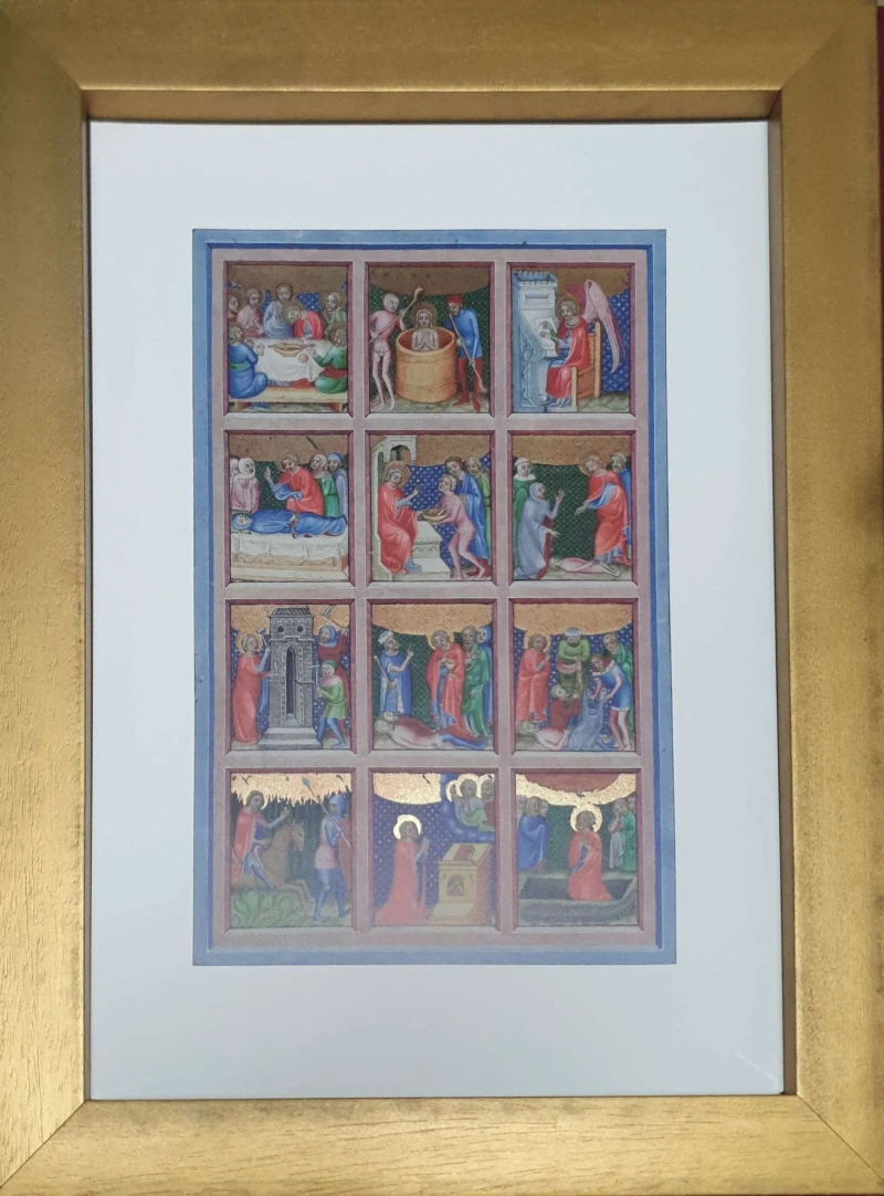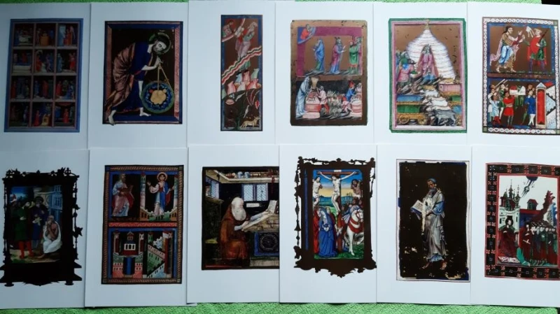 Sadrži 12 vrhunskih kvalitetnih reprodukcija srednjovjekovnih biblijskih ilustracija