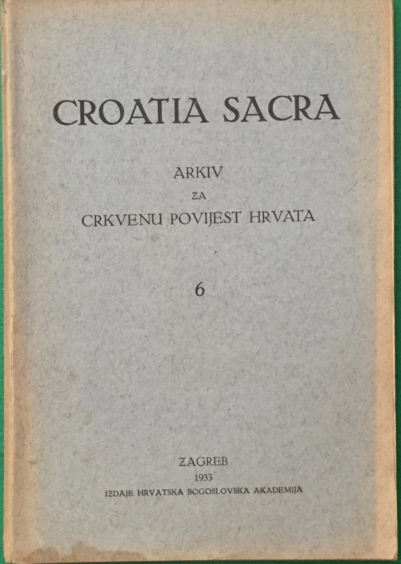 Croatia Sacra: Arhiv za crkvenu povijest Hrvata broj 6