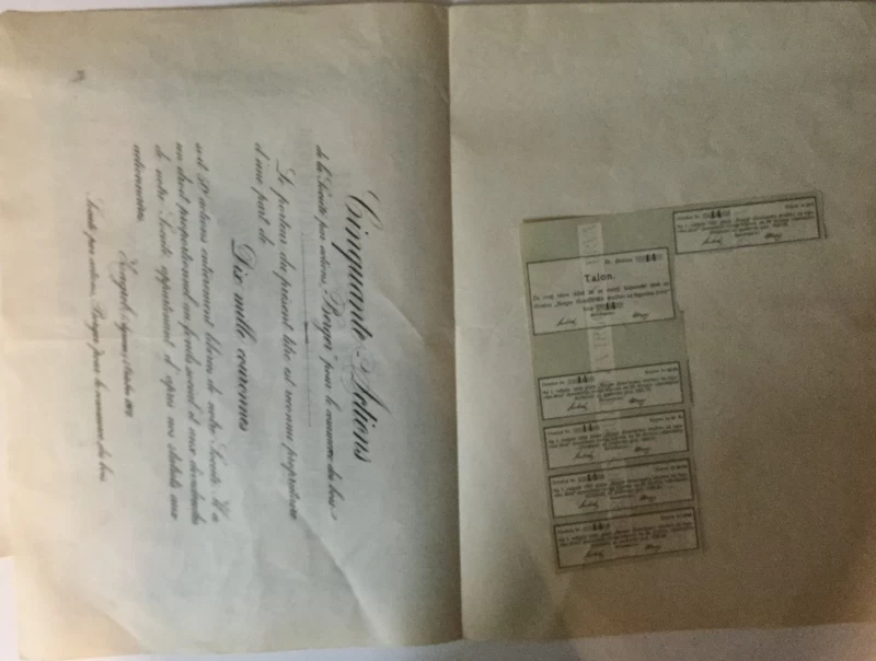 Nepoznati autori: PEDESET DIONICA, BERGER DIONIČARSKO DRUŽTVO ZA TRGOVINU DRVA, ZAGREB, BROJ 14, VRIJEDNOST 10.000 KRUNA, 1907. GOD.