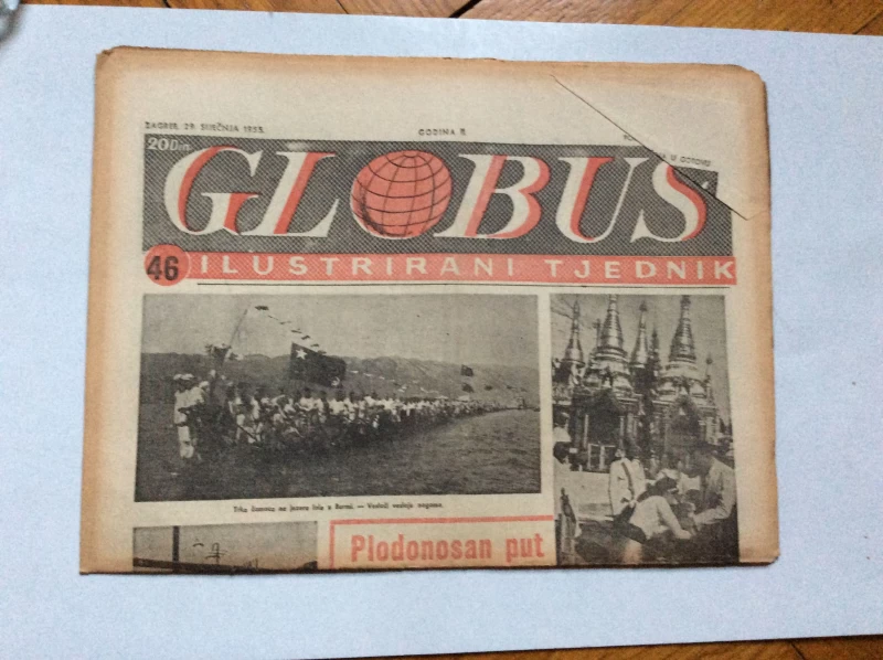 Nepoznati autori: GLOBUS, STARI ČASOPIS, ILUSTRIRANI TJEDNIK, GODiNA 2 BROJ 46, 1955.
