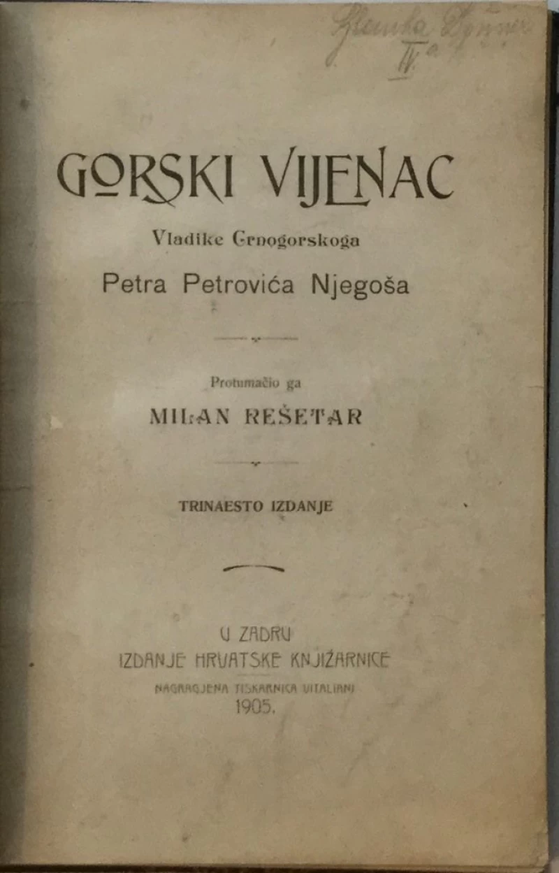 VIJENAC VLADIKE GORSKI: GORSKI VIJENAC VLADIKE CRNOGORSKOGA PETRA PETROVIĆA NJEGOŠA : PROTUMAČIO GA MILAN REŠETAR