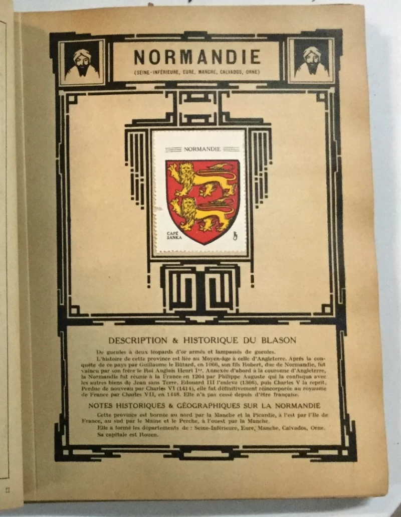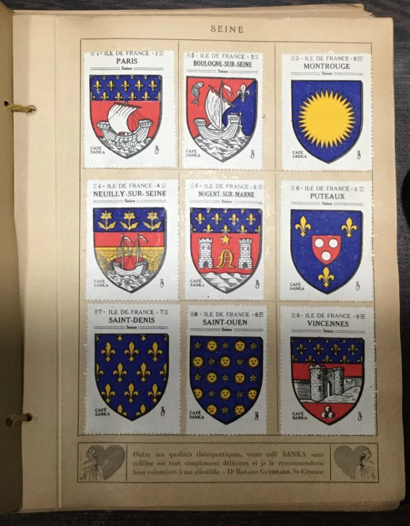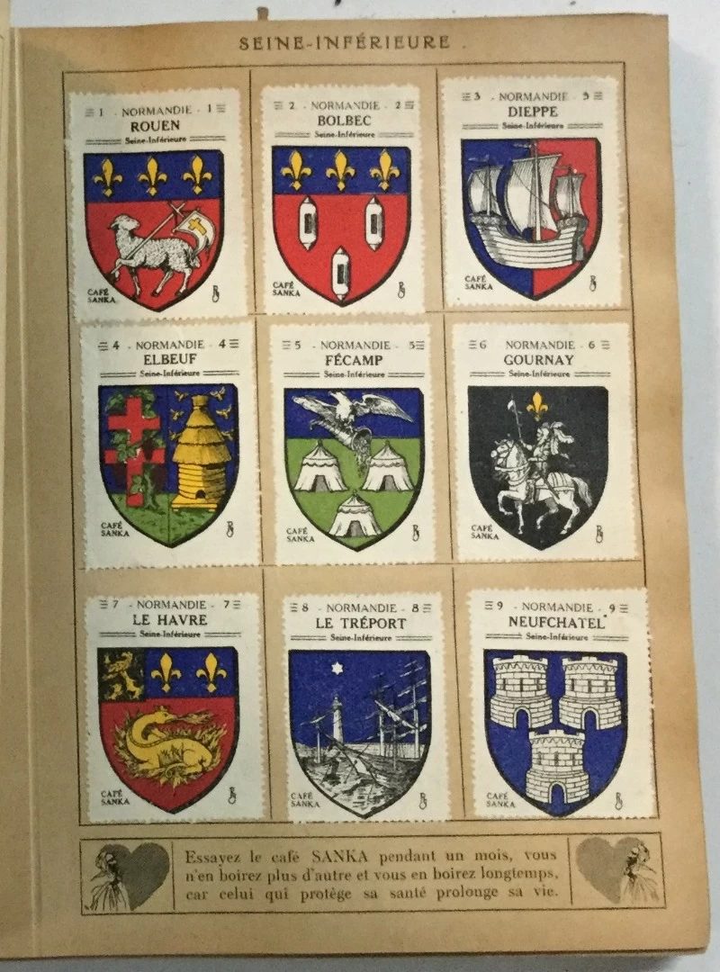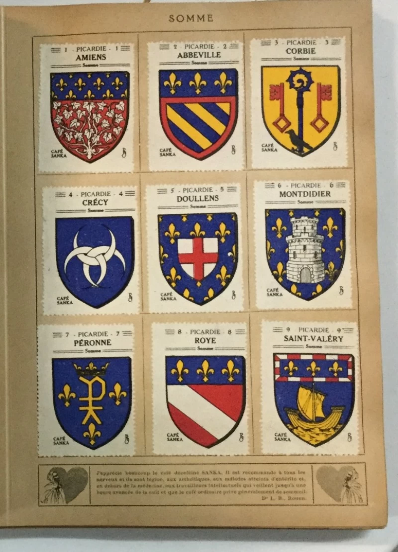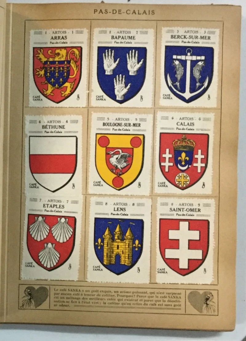 For more info: https://www.heraldry-wiki.com/heraldrywiki/index.php?title=Caf%C3%A9_Sanka_:_La_France_H%C3%A9raldique https://www.heraldry-wiki.com/heraldrywiki/index.php?title=Sanka_Album_1