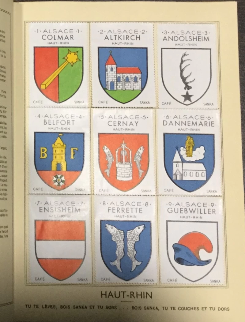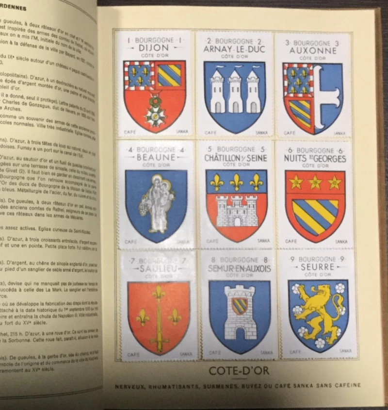 Second album of La France Héraldique series of albums issued by the Café Sanka company, the French daughter of the German Kaffee Hag company. Issued as loose sheets, bound together. In good condition.