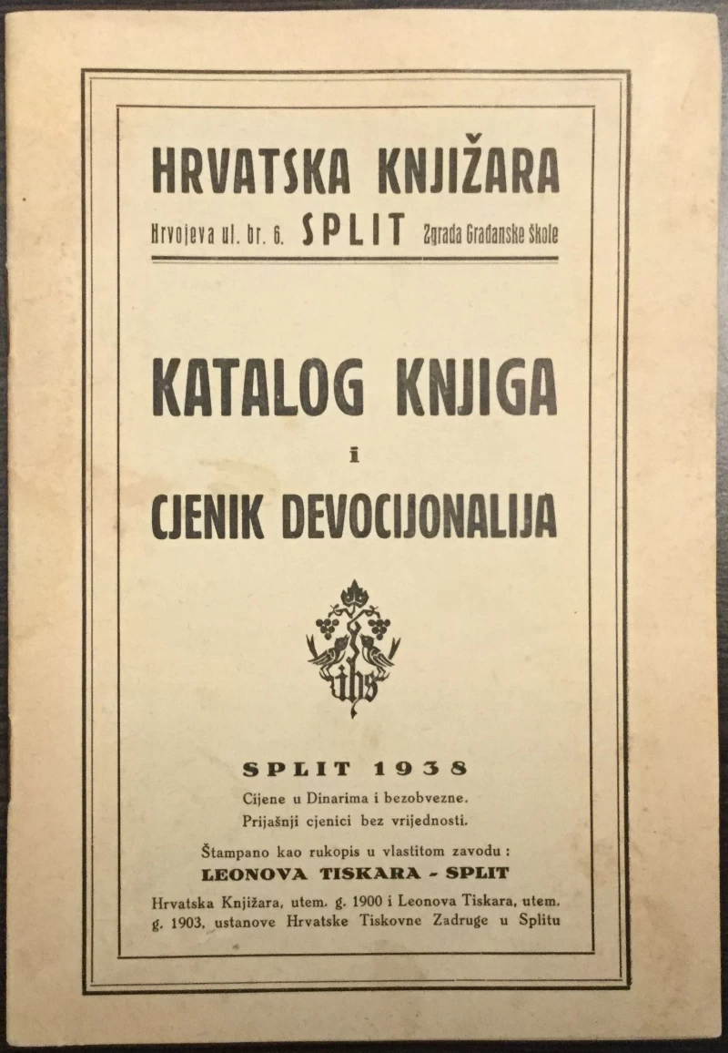 HRVATSKA KNJIŽARA SPLIT : KATALOG KNJIGA I CJENIK DEVOCIJONALIJA