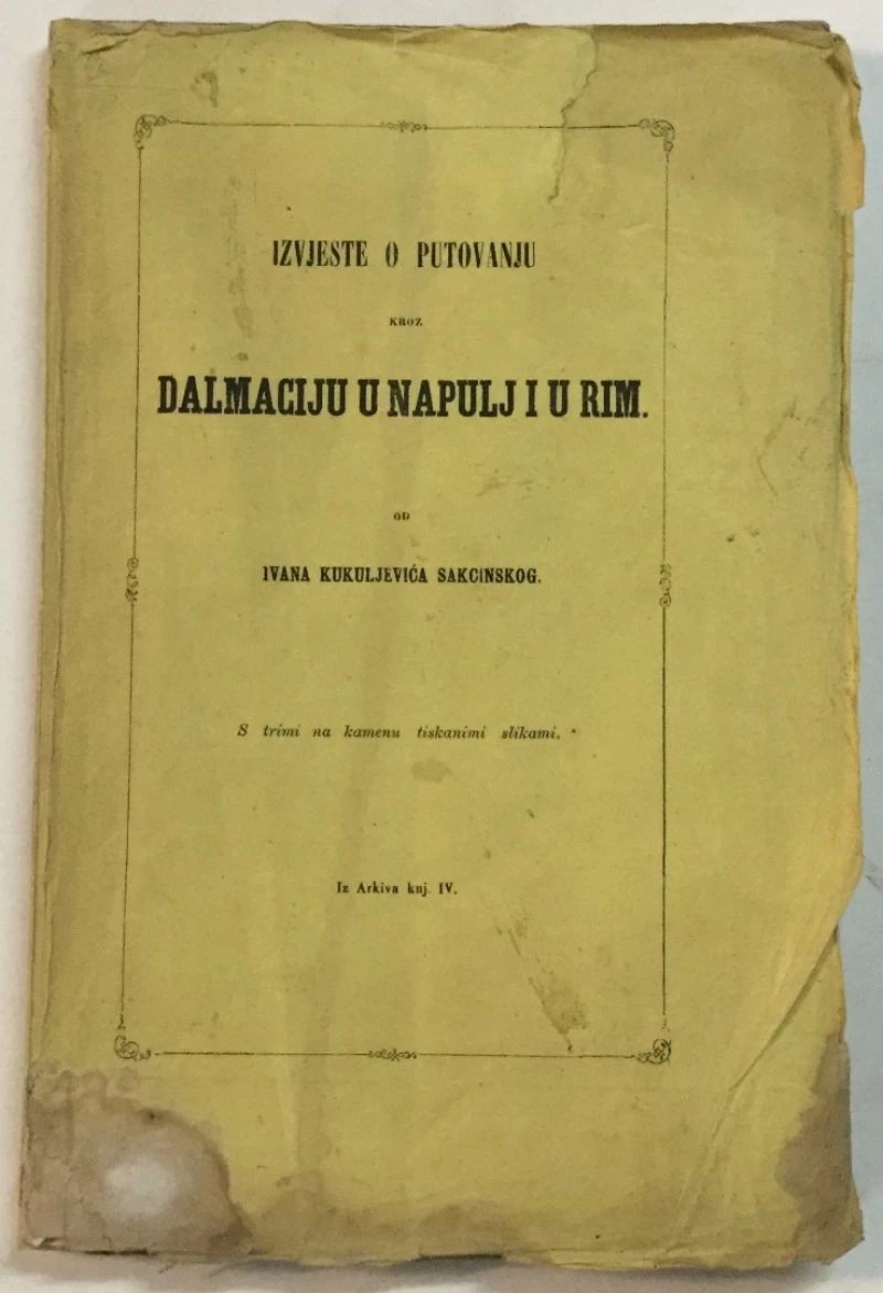 Ivan Kukuljević Sakcinski: Izvjeste o putovanju kroz Dalmaciju u Napulj i u Rim