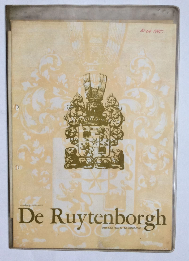 Nepoznati autori: BOERDERIJ - RESTAURANT DE RUYTENBORGH, ETTEN LEUR, NETHERLANDS, MENU