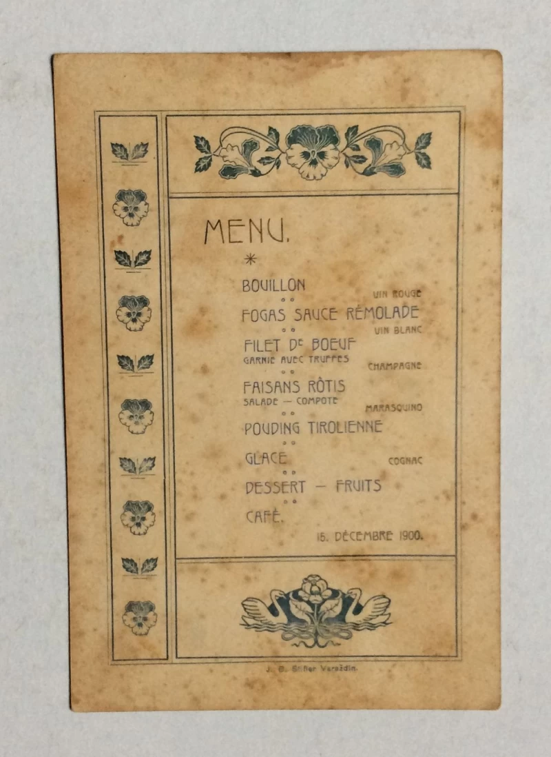 Nepoznati autori: MENU, VARAŽDIN, 1900