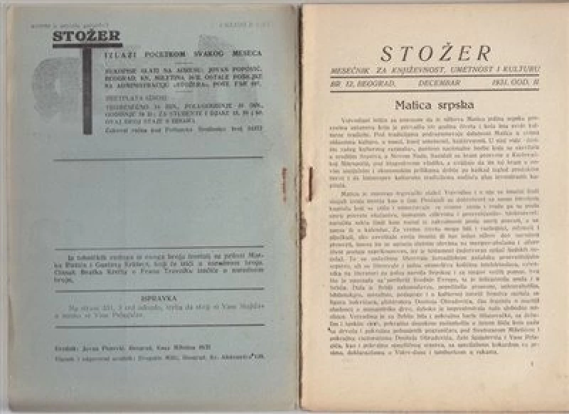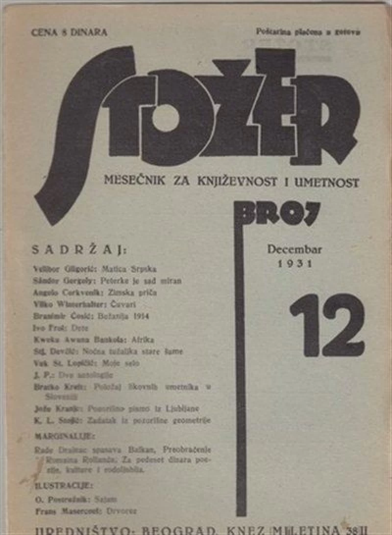 Popović urednik Jovan: Jovan Popović, urednik: Stožer, broj 12. Godina 1931.