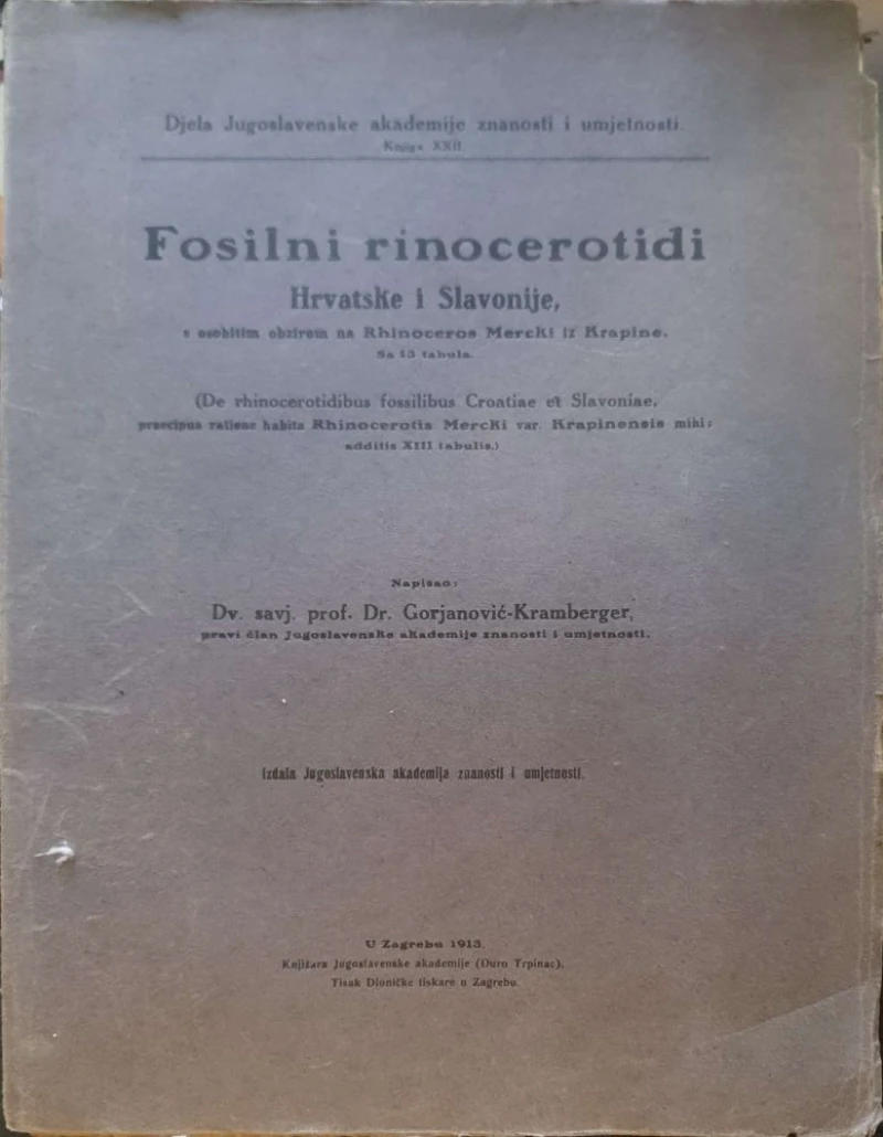 Dragutin Gorjanović-Kramberger: Fosilni rinocerotidi Hrvatske i Slavonije, s osobitim obzirom na Rhinoceros Mercki iz Krapine