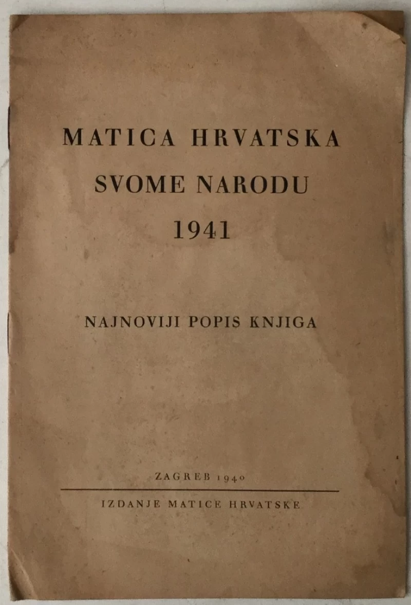 Nepoznati autori: Matica hrvatska svome narodu 1941., najnoviji popis knjiga