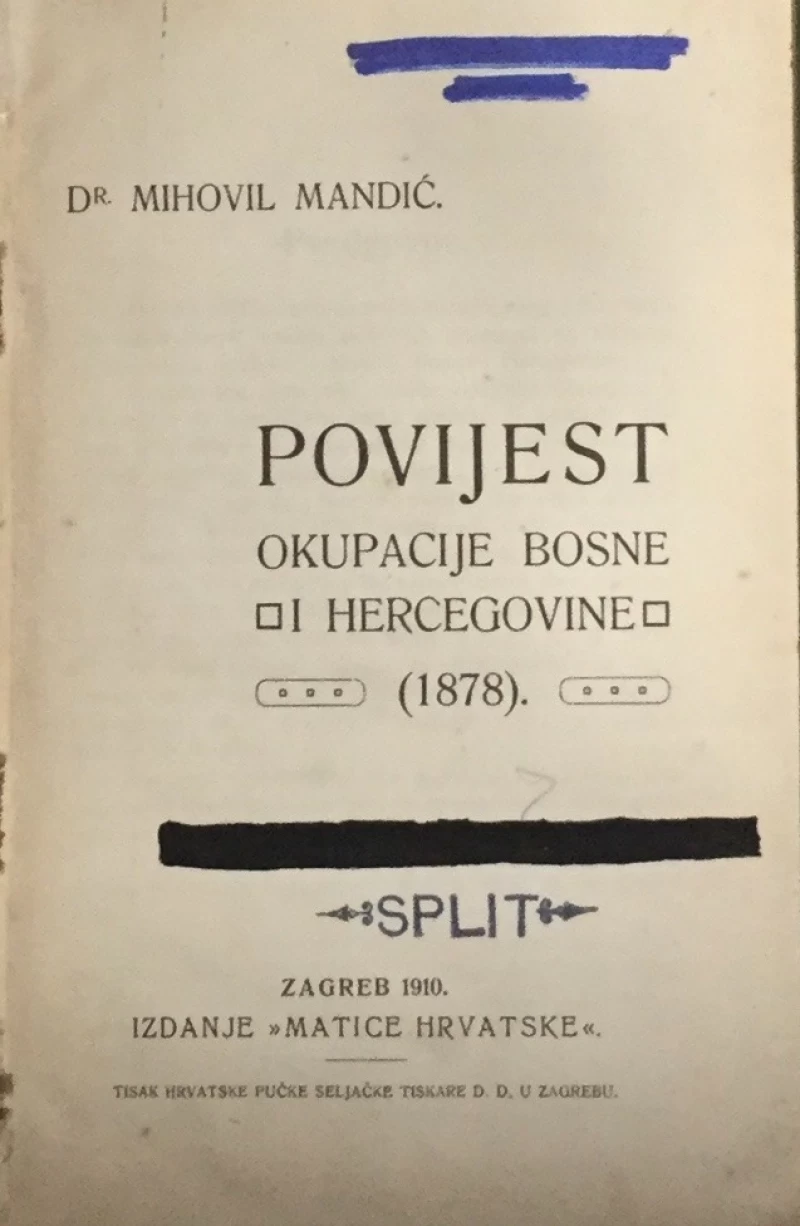 Vrlo rijetko izdanje Mandićeve knjige o okupaciji BIH 1878., uključuje kartu.