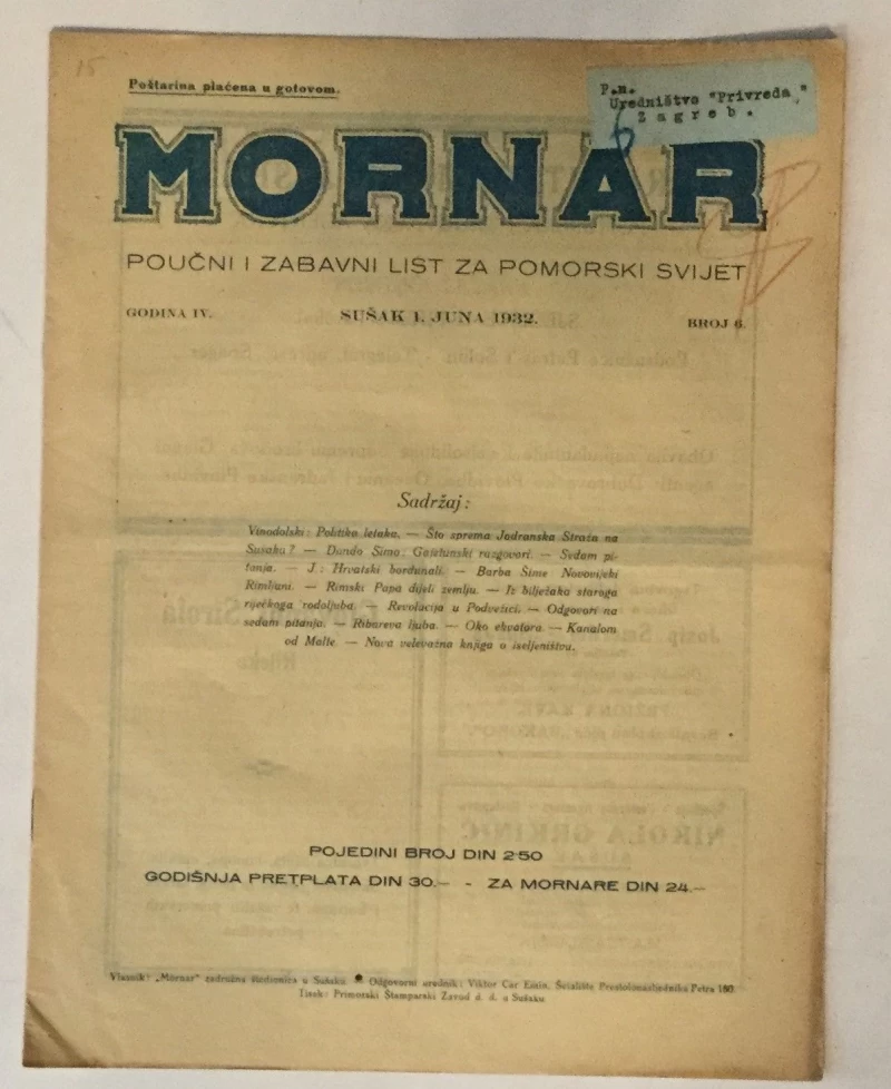 IZDAVAČ:PRIMORSKI ŠTAMPARSKI ZAVOD U SUŠAKU