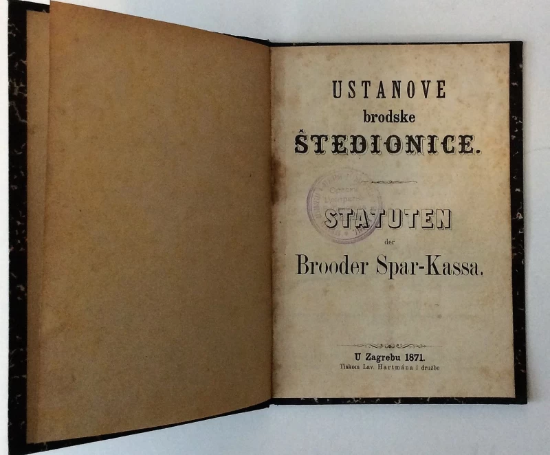 Nepoznati autori: USTANOVE BRODSKE ŠTEDIONICE, STATUTEN DER BROODER SPAR - KASSA, ZAGREB 1871.