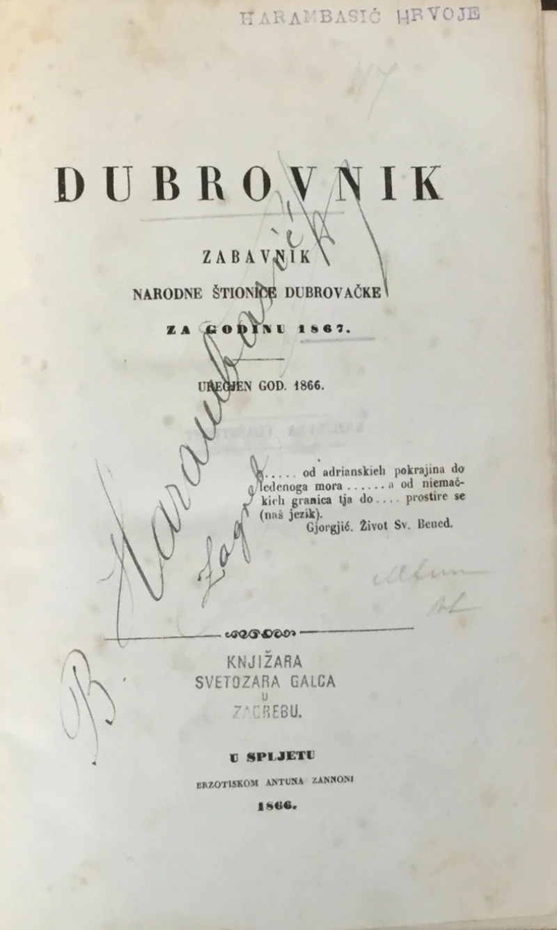 Svezak za godinu 1867., uređivali su ga Josip Bunić i Antun Zannoni, sadrži 522 stranice. Časopis se bavi narodnom štionicom (knjižnicom) u Dubrovniku.