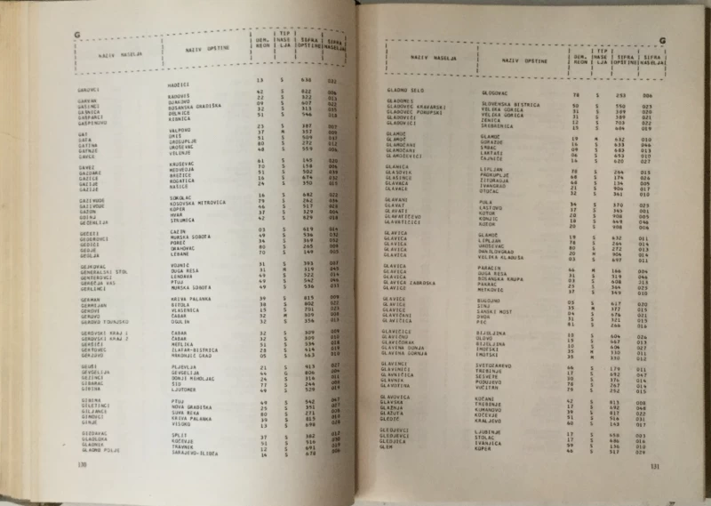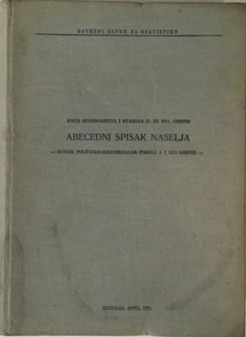 Popis stanovništva i stanova 31.03.1971. godine: Abecedni spisak naselja