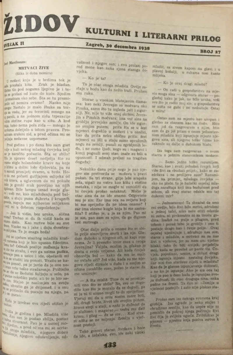Židov: Kulturni i literarni prilog 1938. broj 1-27