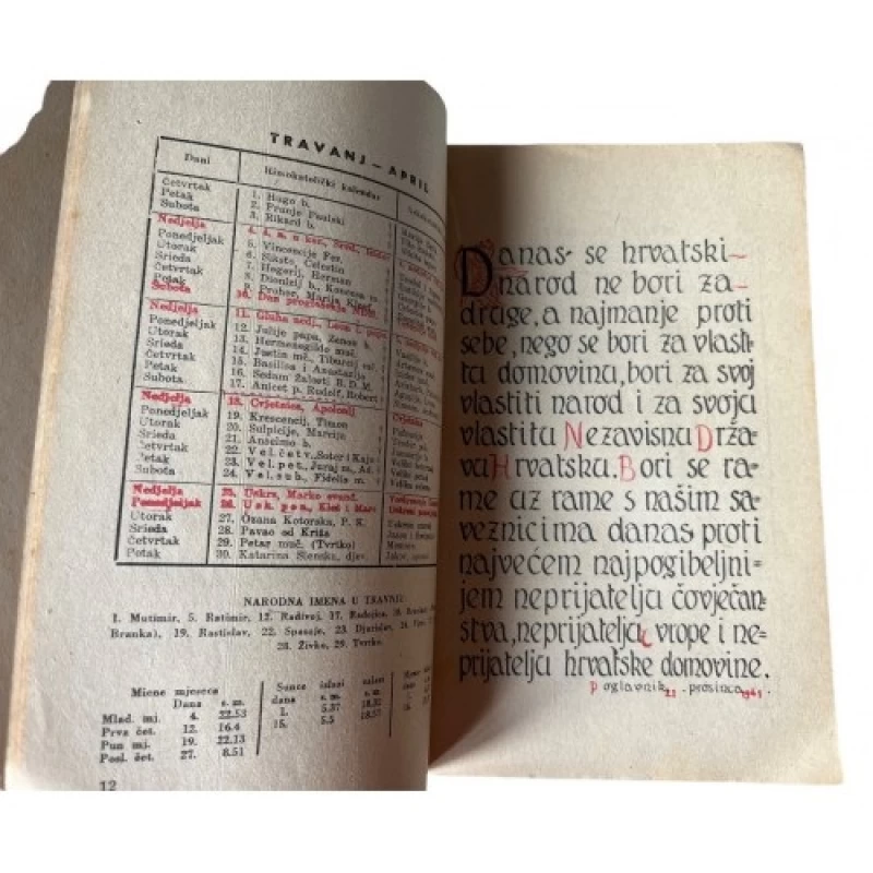 NDH - kalendar za 1943. godinu, sa slikom Poglavnika. Ustaški godišnjak 1943. izdan na pobudu Glavnog Ustaškog Stana. Rijetko u ponudi