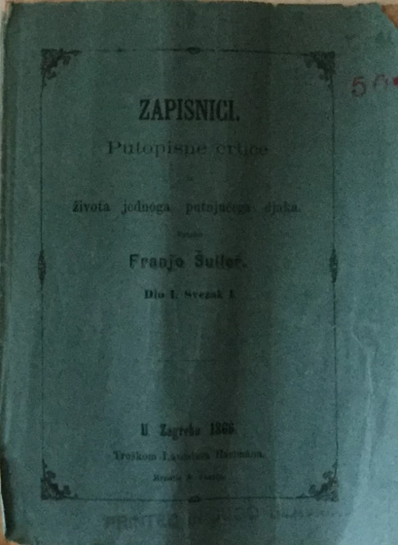 Šuller Franjo: Franjo Šuller: Zapisnici, Putopisne crtice iz života jednog putujućega djaka dio I. svezak I.