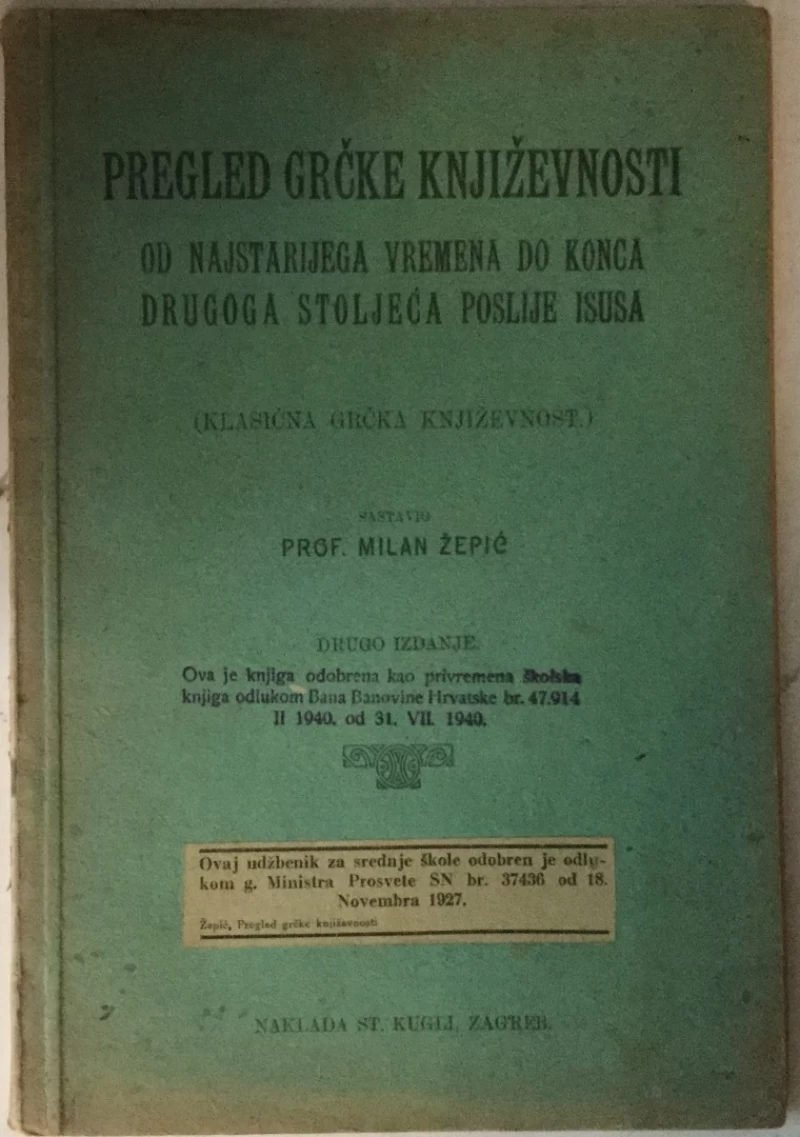 Žepić Milan: Milan Žepić: Pregled grčke književnosti od najstarijeg vremena do konca drugoga stoljeća poslije Isusa