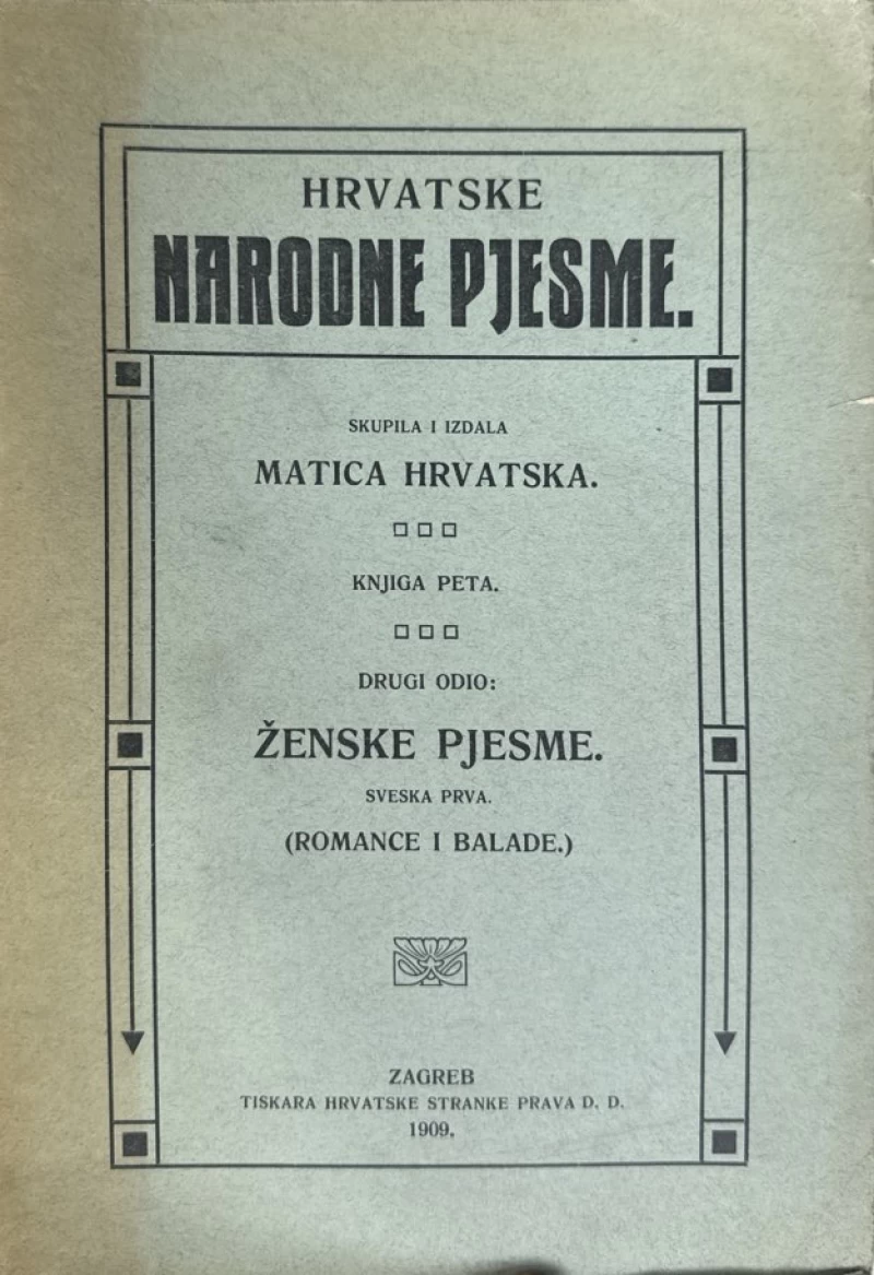 Nikola Andrić (ured.): Hrvatske narodne pjesme. Knjiga V. Ženske pjesme. Sveska prva