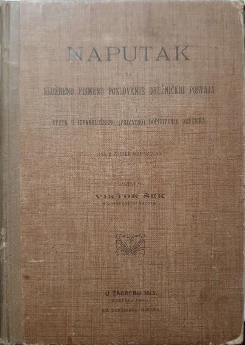 Viktor Šek: Naputak za službeno pismeno poslovanje oružničkih postaj Uputa u izvanslužbeno privatno dopisivanje oružnika