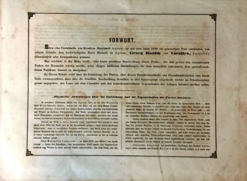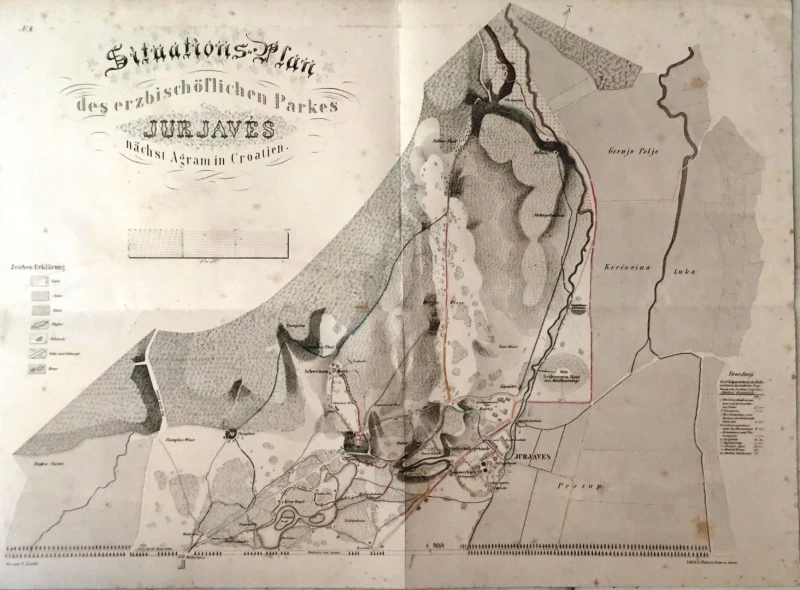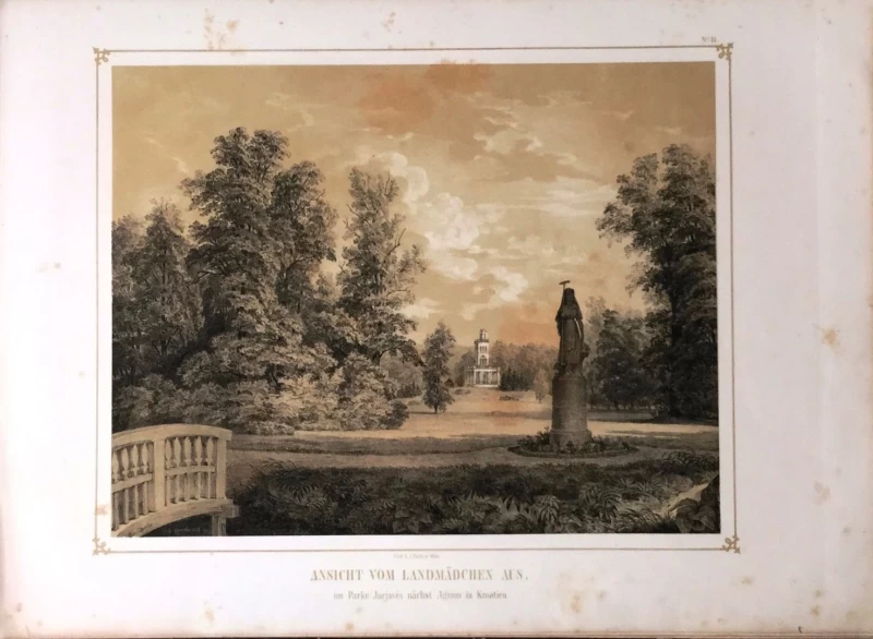Godine 1852. tadašnji zagrebački nadbiskup Haulik naručuje od slikara Ivana Zaschea (1826.-1863.) seriju litografija parka Jurjavas, današnjeg Maksimira.Upravo je bio završen Park Jurjaves (Maksimir) pa je nadbiskup želio ovjekovječiti svoje djelo i po modi onog vremena izdati album litografija sa motivima iz parka Maksimir. Zasche je izradio predivan album koji se sastoji 10 str. predgovora, preklopnog plana parka Masimir, naslovne stranice na kojoj je dopadljiva litografija Zagreba i još 11 različitih litografija parka, od kojih je većina prepoznatljiva i danas. Skice za litografiju je izradio u Zagrebu, a album je tiskan u Beču u to vrijeme u jednoj od najboljih tiskara. Zascheov album je vjerojatno najljepše i jedno od najvažnijih djela posvećenih gradu Zagrebu. Predmetni album je tiskan u limitiranoj seriji.