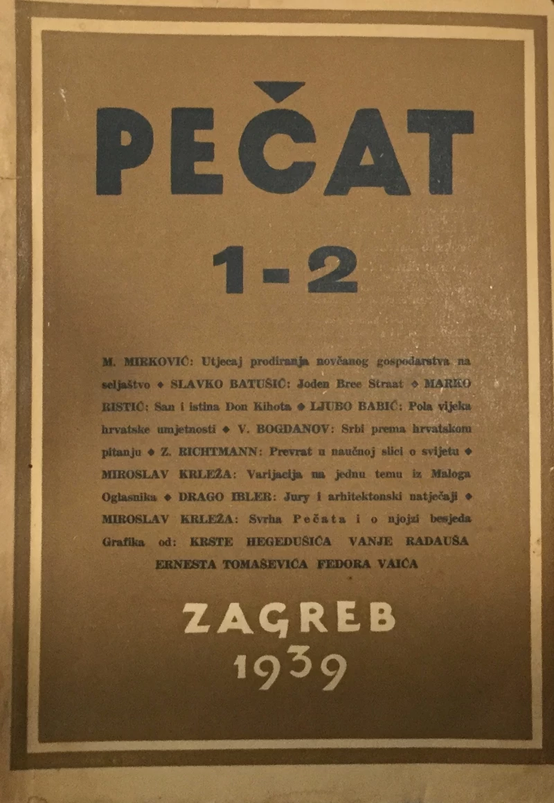 Iako je ključni čovjek časopisa, Krleža je do dvobroja 8-9 potpisan samo kao član uredništva, tek potom je glavni urednik. Već u prvom dvobroju Krleža i Marko Ristić tiskaju tekstove koji će potaknuti novu fazu polemika na ljevici. U svibnju 1939. sastaje se s generalnim sekretarom KPJ J. Brozom Titom koji ga uzaludno nastoji uvjeriti da prekine polemiku. Sukob kulminira objavljivanjem Krležina Dijalektičkog antibarbarusa u dvobroju 8-9 u kojem se on oštro obračunava sa zagovornicima tzv. Socijalne literature i ideolozima KPJ. U časopisu su sudjelovali i pisali Miroslav Krleža, Marko Ristić, Mijo Mirković, Drago Ibler ( bio je i urednik časopisa), Ljubo Babić, Viktor Vida, Vid Ribar, Slavko Batušić, Milan Dedinac, Krsto Hegedušić, Ranko Marinković, Zvonimir Richtman, Petar Šegedin, Hasan Kikić, Oskar Davičo ( koji je zbog suradnje u Pečatu 1940. godine i isključen iz KPJ), Petar Kružić, Dobriša Cesarić, Vilim Svečnjak, Drago Ivanišević...