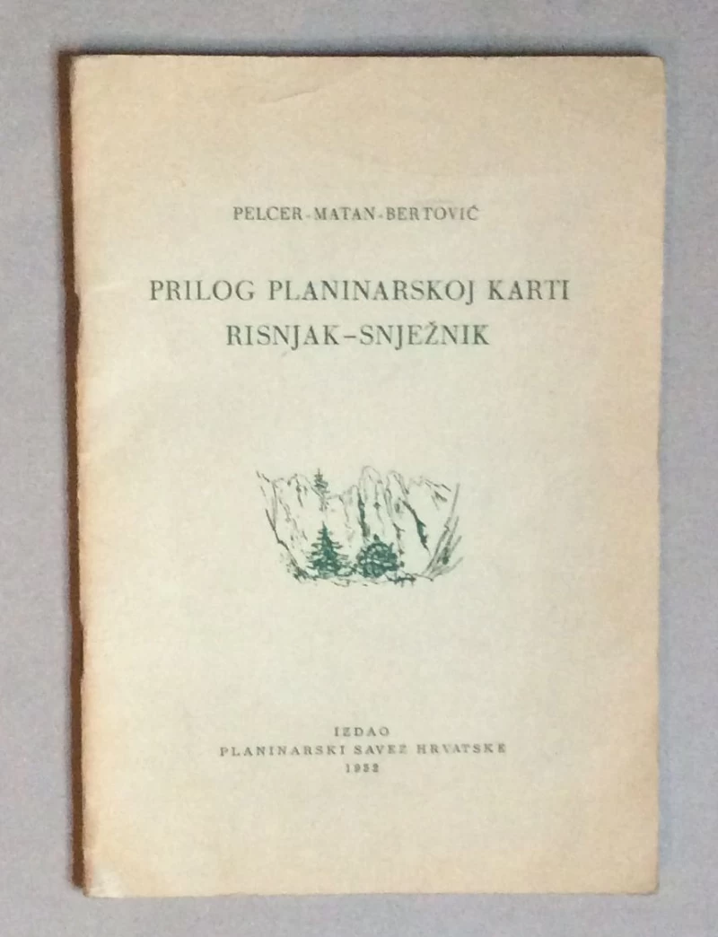PELCER-MATAN-BERTOVIĆ, PRILOG PLANINARSKOJ KARTI RISNJAK-SNJEŽNIK, ZAGREB, 1952.