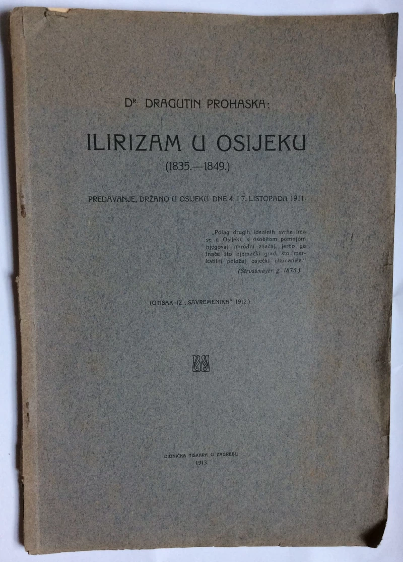 DRAGUTIN PROHASKA, ILIRIZAM U OSIJEKU, 1913. ZAGREB