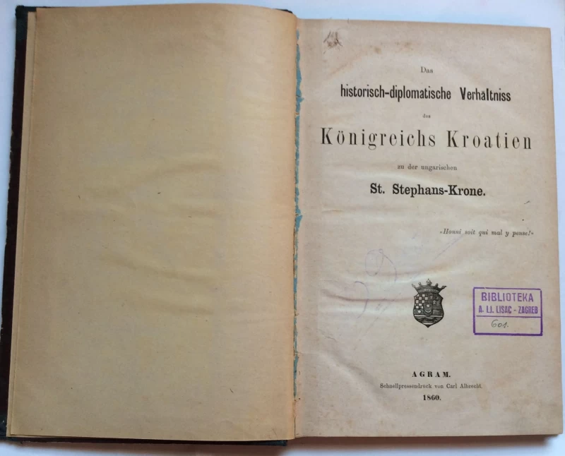 EUGEN KVATERNIK, SOLLEN WIR MAGYADAS HISTORISH - DIPLOMATISCHE VERHÄLTNISS DES KÖNIGREICHS KROATIEN, 1860. AGRAM