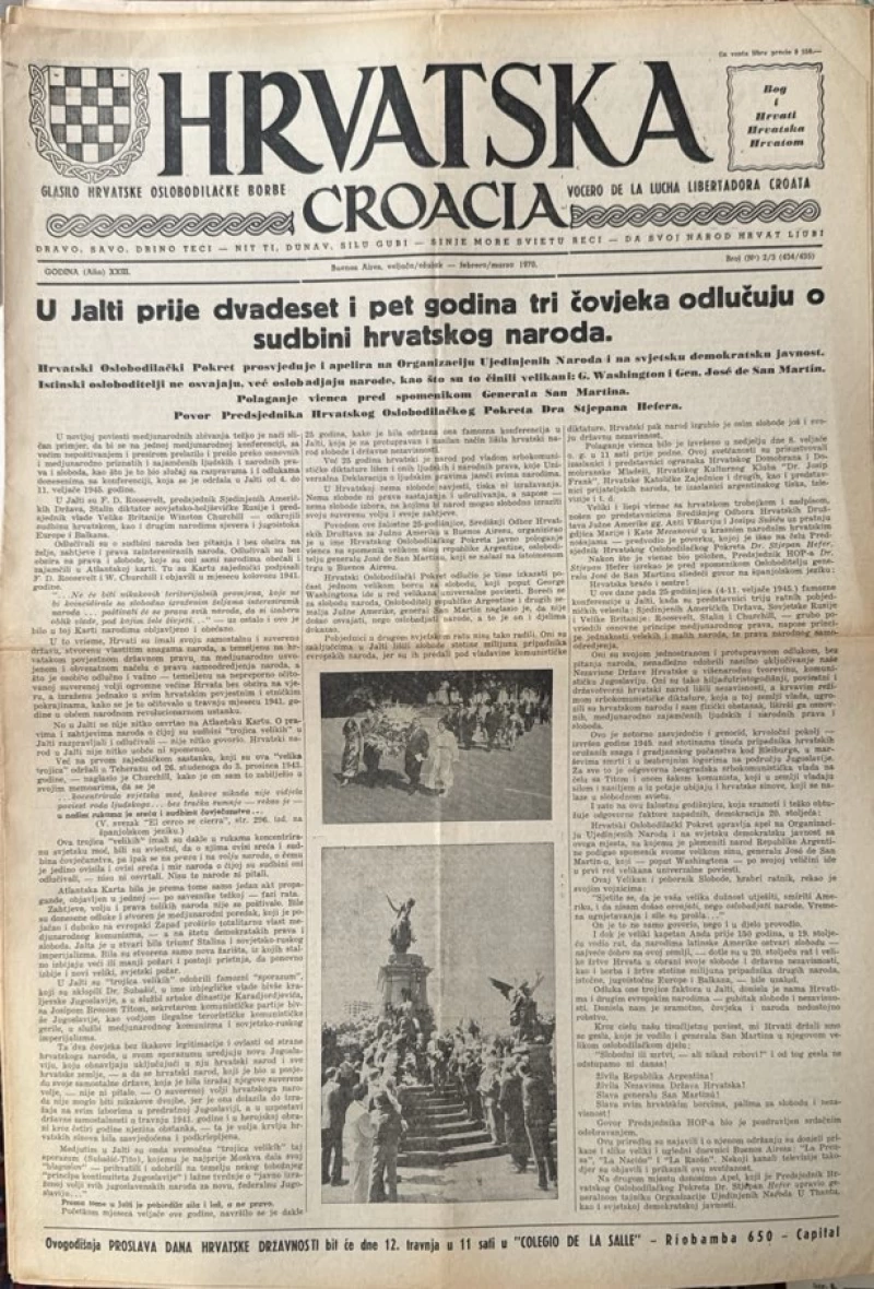 Časopis: Hrvatska - Glasilo hrvata Južne Amerike br. 2/3/ 1970.