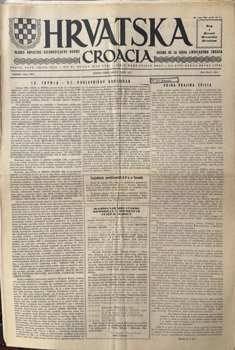 Časopis: Hrvatska - Glasilo hrvata Južne Amerike br. 7/ 1971.
