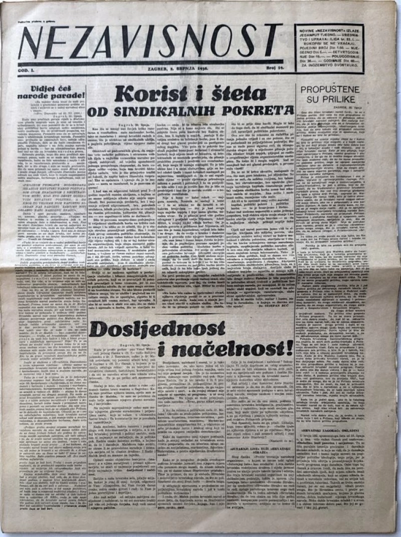 Časopis Nezavisnost broj 19/ 1938.