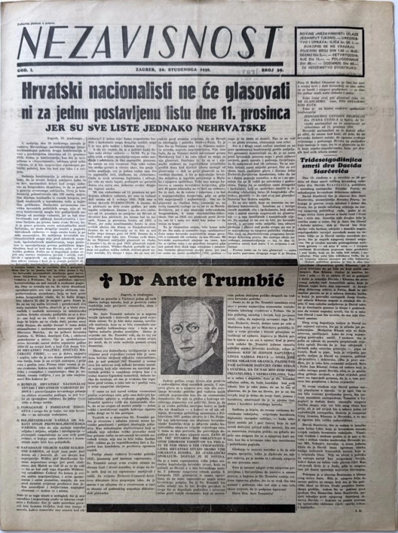 Nepoznati autori: Časopis Nezavisnost broj 39/ 1938.