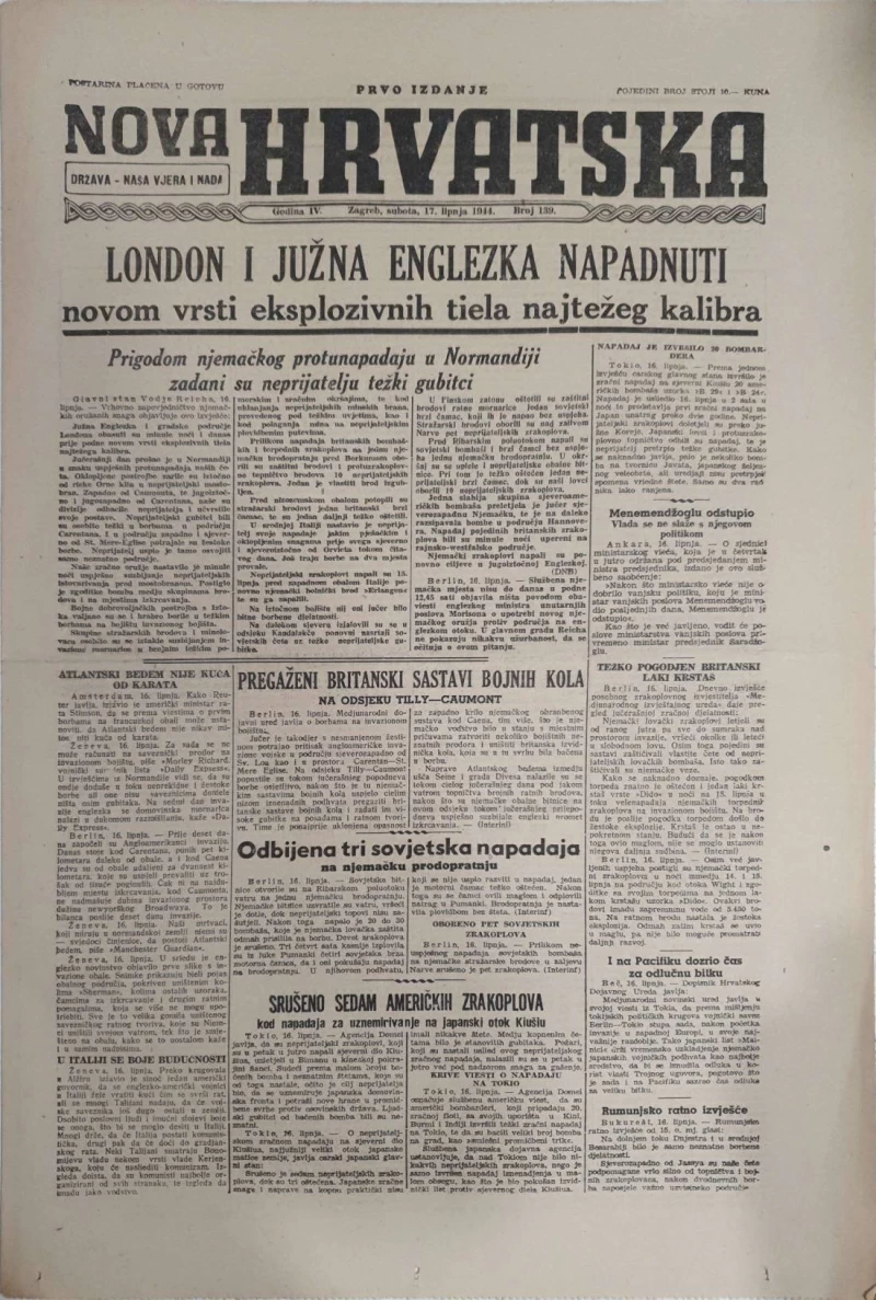 Časopis Nova Hrvatska: godina IV, broj 139/1944