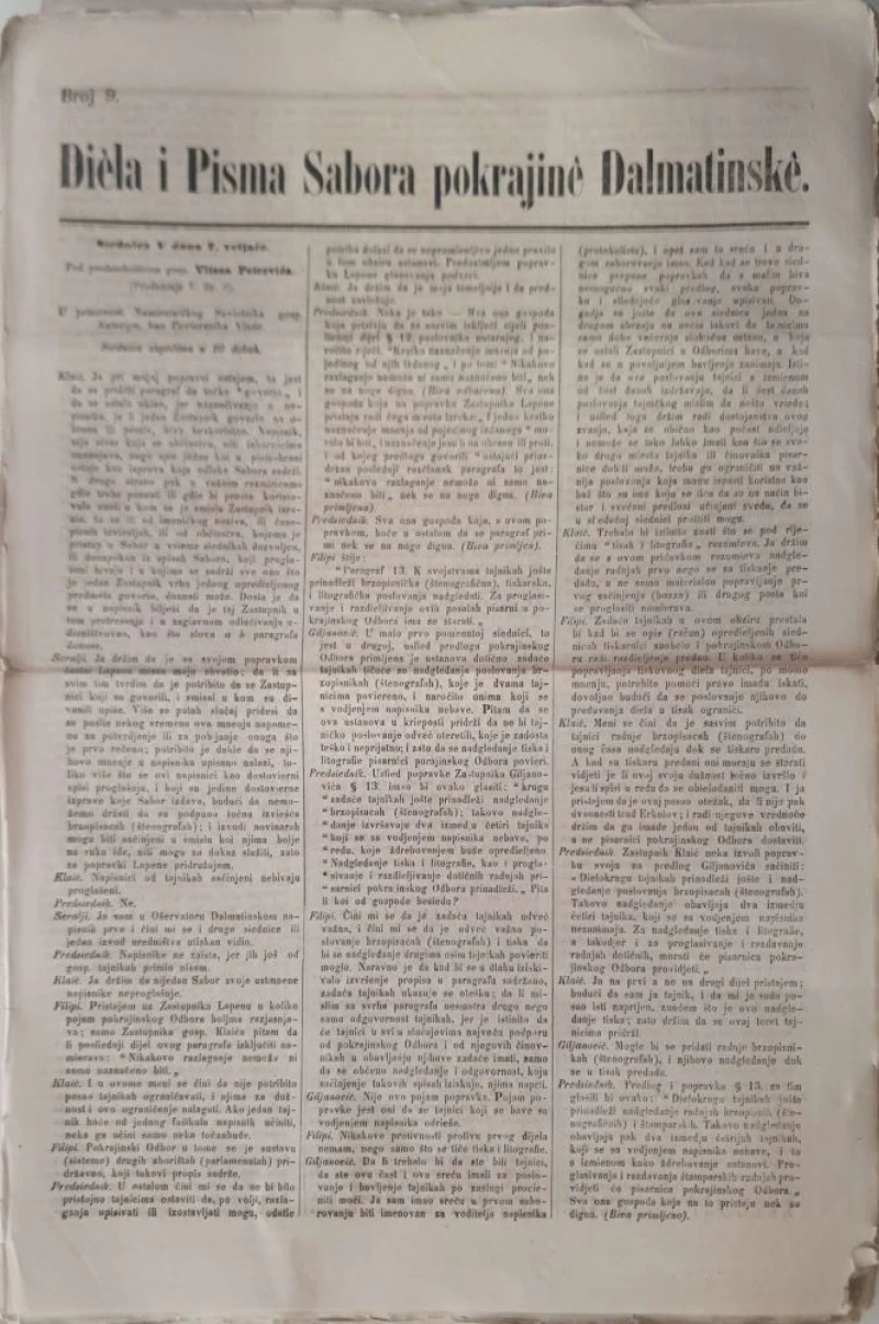 Nepoznati autori: Diela i Pisma Sabora pokrajine Dalmatinske broj 9/1863