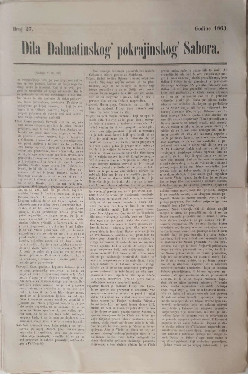 Dila Dalmatinskog pokrajinskog Sabora broj 27/1863