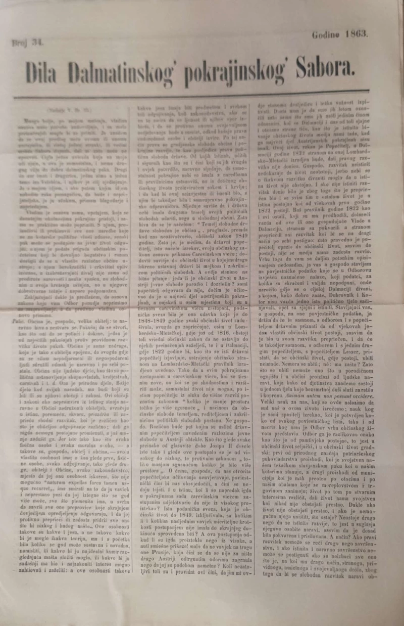 Dila Dalmatinskog pokrajinskog Sabora broj 34/1863
