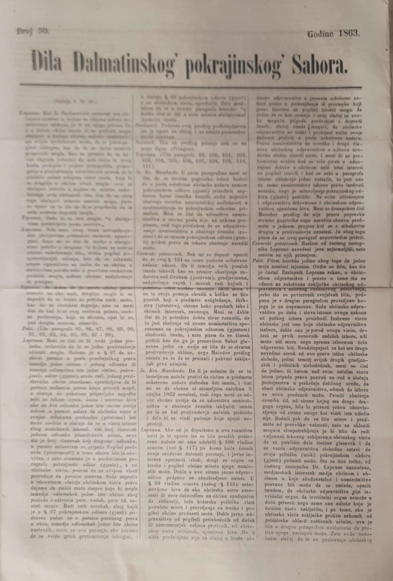 Dila Dalmatinskog pokrajinskog Sabora broj 50/1863