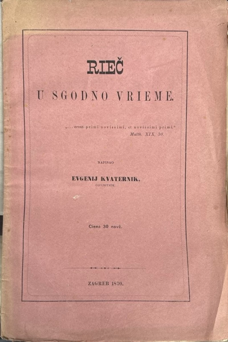EUGEN KVATERNIK : RIEČ U SGODNO VRIEME