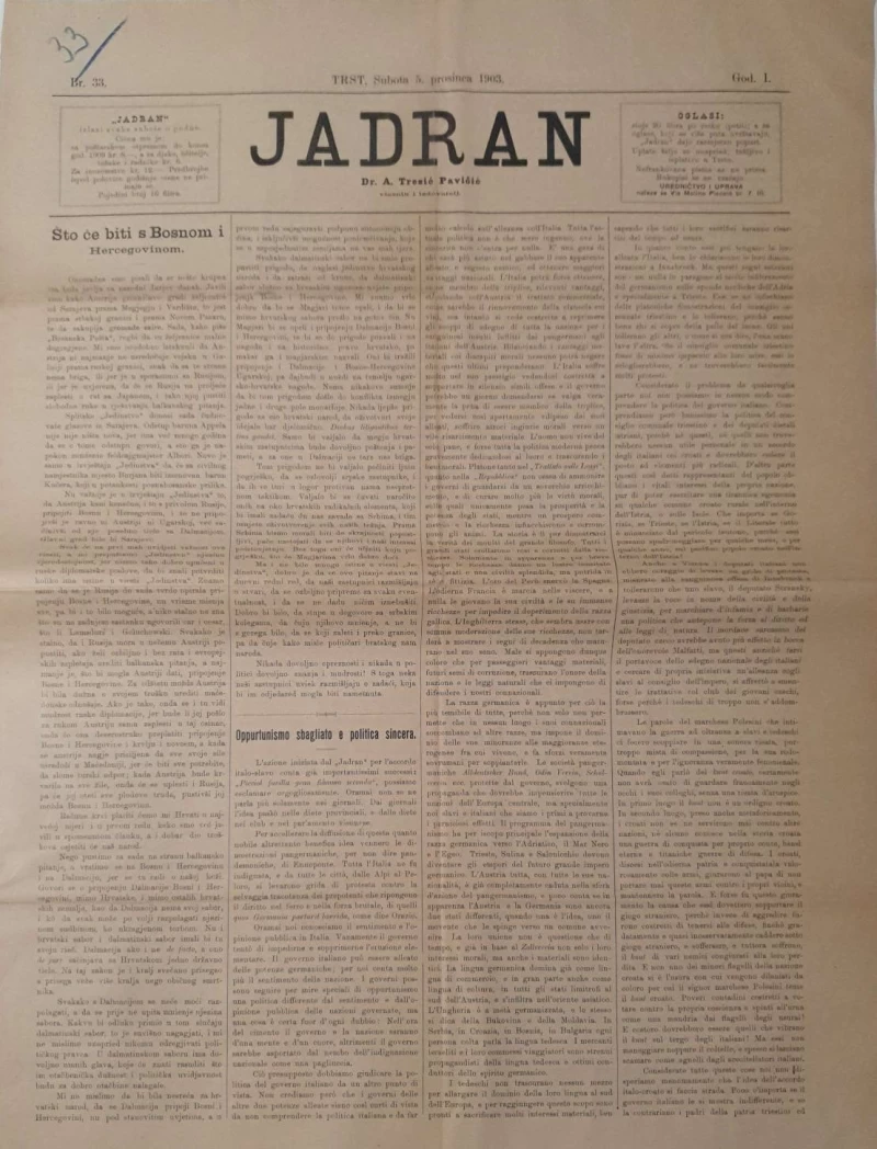 Nepoznati autori: Jadran: Broj 33, 05.12.1903