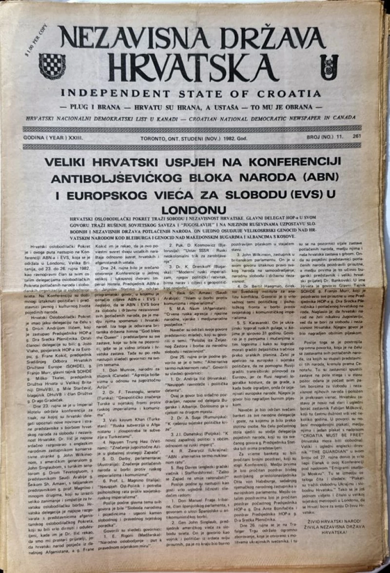 Nezavisna Država Hrvatska broj 11/ 1982.