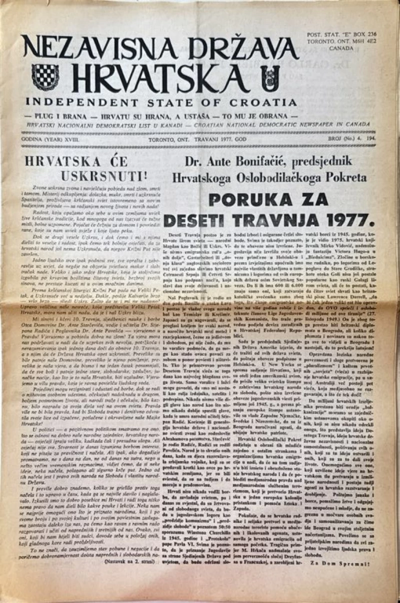 Nezavisna Država Hrvatska broj 4/ 1977.