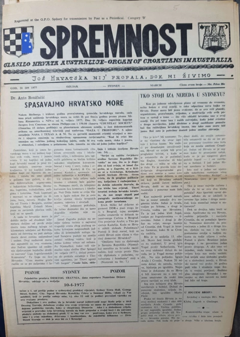 Glasilo Hrvata Australije-organ of Croatians in Australia. Politička propaganda.