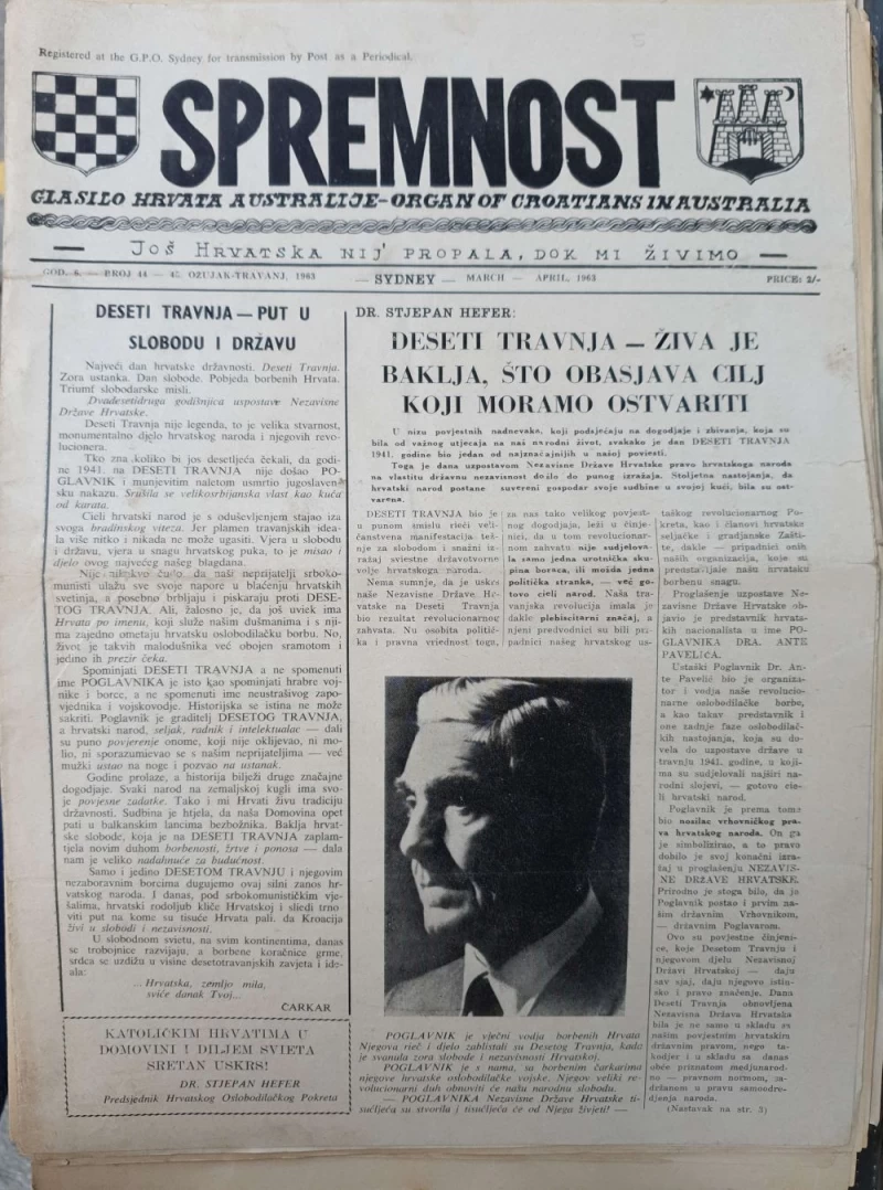 Glasilo Hrvata Australije-organ of Croatians in Australia. Politička propaganda.