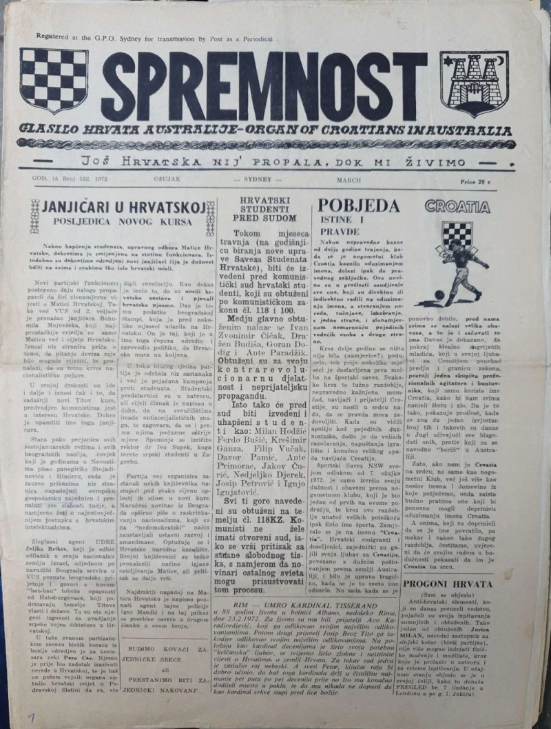 Glasilo Hrvata Australije-organ of Croatians in Australia. Politička propaganda.