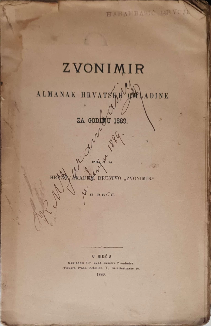 Izdalo ga hrvat. akadem. družtvo "Zvonimir" u Beču