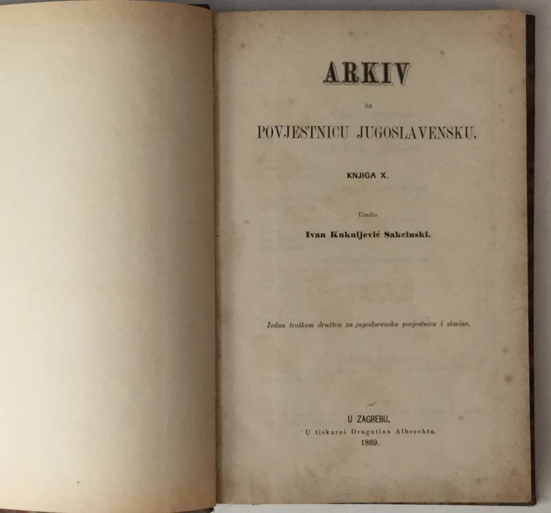 IVAN KUKULJEVIĆ SAKCINSKI : ARKIV ZA POVJESTNICU JUGOSLAVENSKU : KNJIGA X