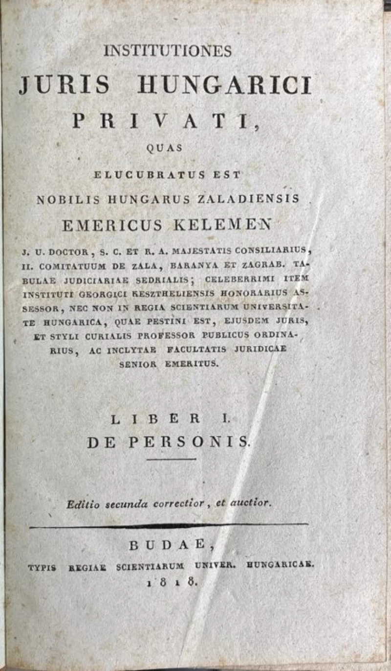 Kelemen Emericus: Institutiones juris hungarici privati I. De personis (1.ed.)