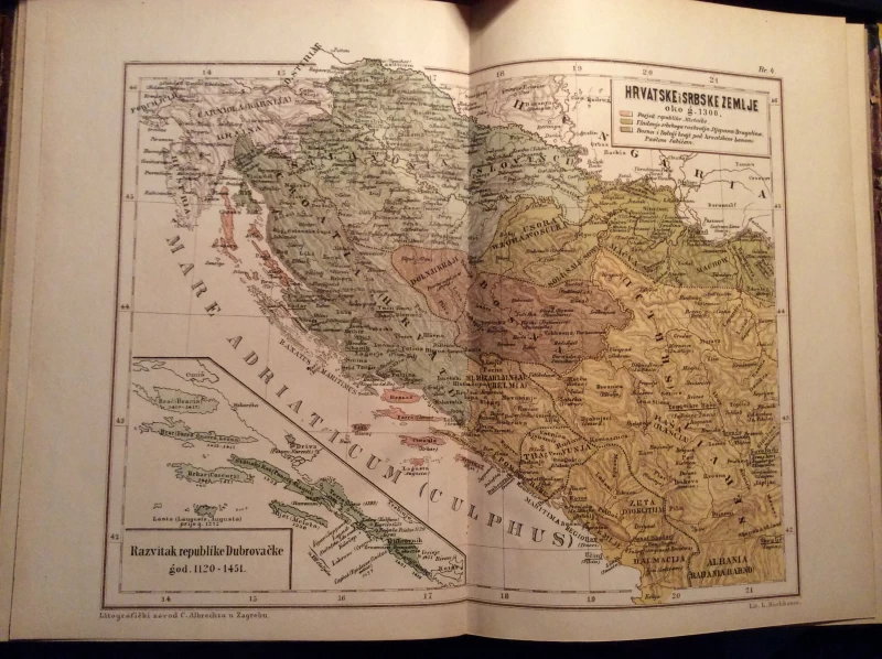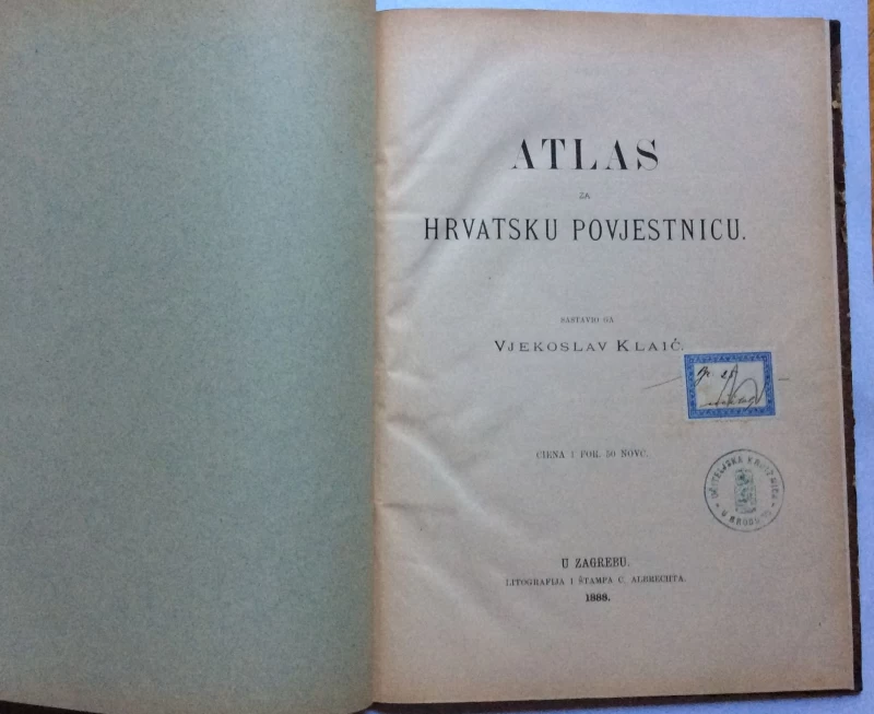 Nepoznati autori: KLAIĆ VJEKOSLAV, ATLAS ZA HRVATSKU POVJESTNICU, 1888. SA 6 ZEMLJOPISNIH KARATA